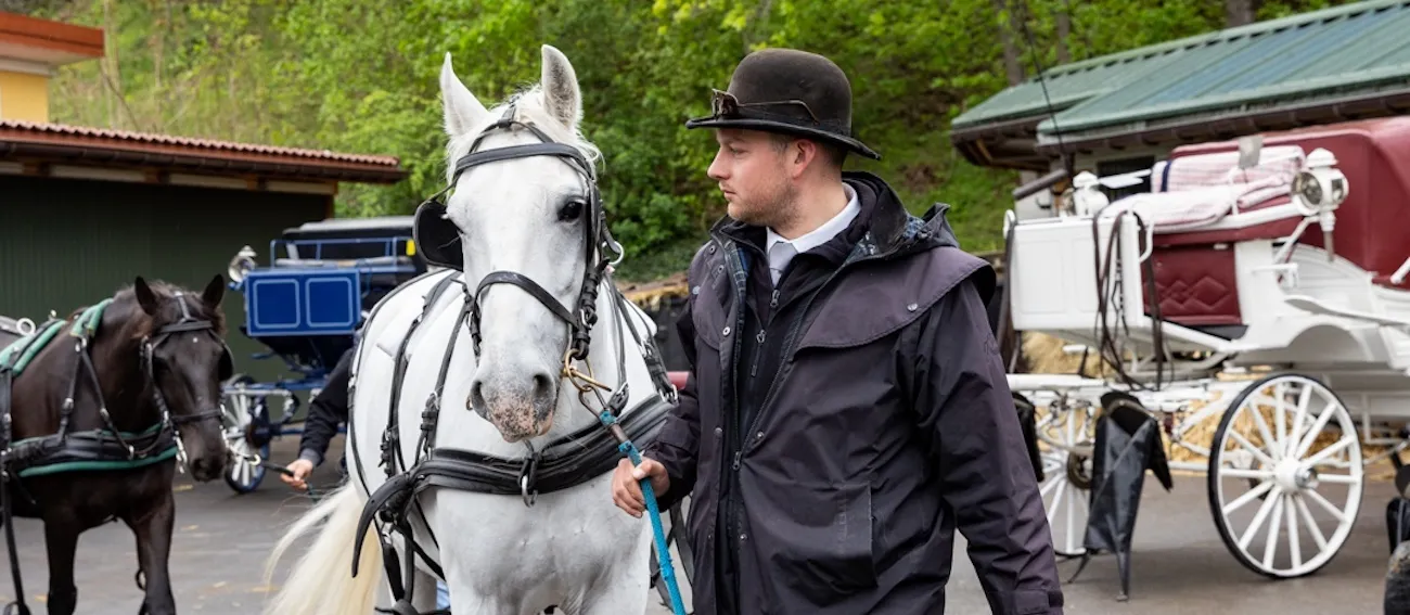Die Seele des Berufs: Erfahren Sie mehr über das Handwerk des Kutschers – von der Pflege der Geschirre bis hin zur Etikette auf dem Bock. Wir zeigen Ihnen unsere modernen Stallungen, die Tradition mit modernsten Standards der Tierhaltung verbinden. Dies ist die Basis für alles, was wir in der Stadt präsentieren.